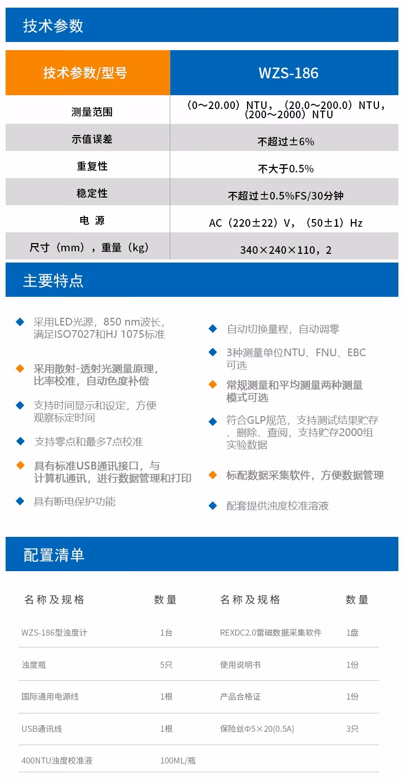 雷磁 浊度分析仪便携式台式浊度计污水浊度测量仪游泳池浊度在线检测仪